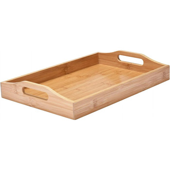 Bandeja de madera ecológica hecha a mano con sección elegante en forma de U para decoración del hogar o exhibición decorativa