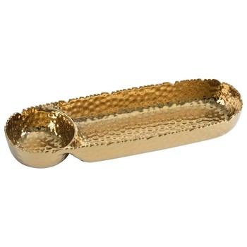 Elegante bandeja de aluminio dorado con diseño de Metal tallado, cuenco duradero para Chip y inmersión, plato para aperitivos, decoración de comedor de cocina multiusos